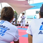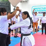 La campeona Jaqueline Factos destacó los alcances de la iniciativa de la Prefectura Ciudadana del Guayas. “Las artes marciales y la defensa personal agregan un plus: la seguridad, la confianza, el empoderamiento en el género femenino”, detalló.