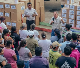 La Prefectura del Guayas entregó kits de Ayuda Humanitaria que cubren varios días de consumo a familias de cinco recintos, mientras mantiene su despliegue de atención en el cantón.