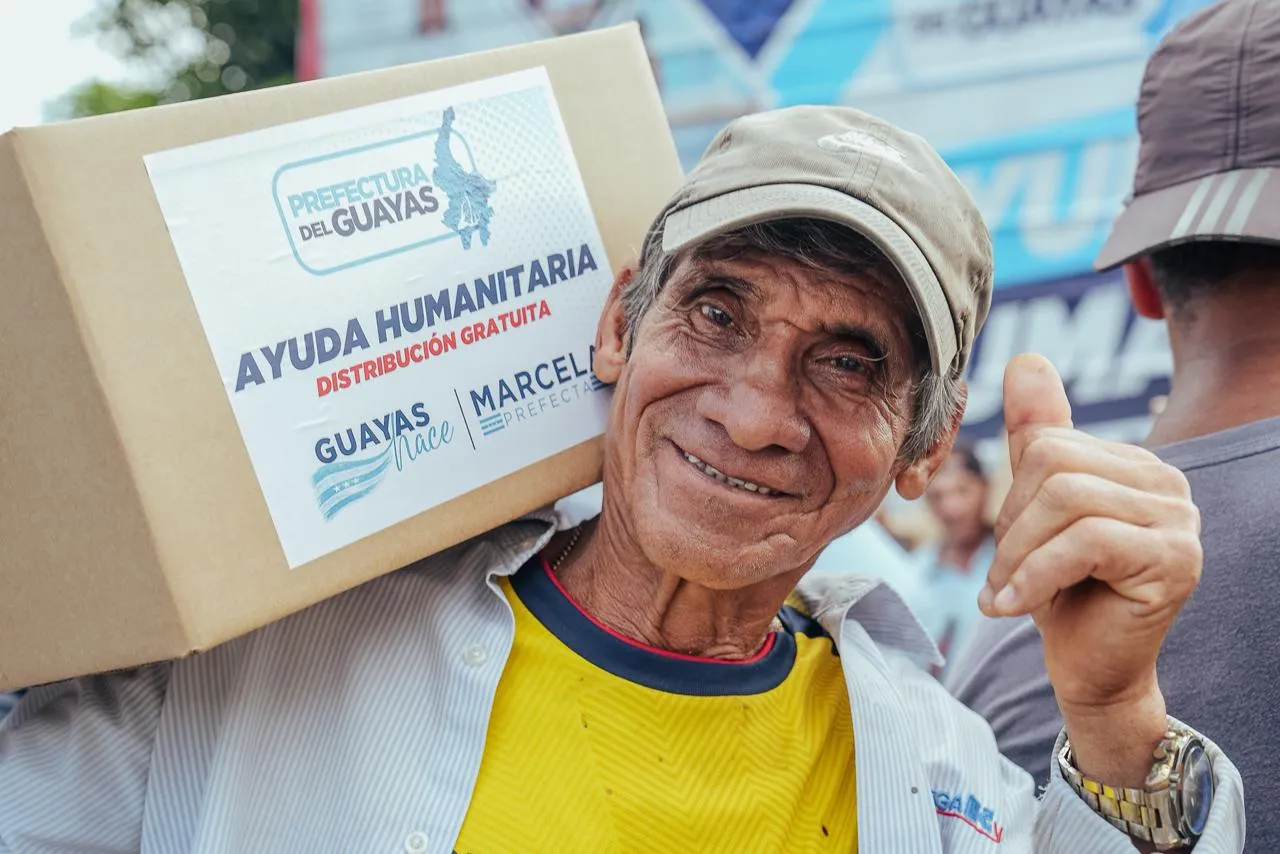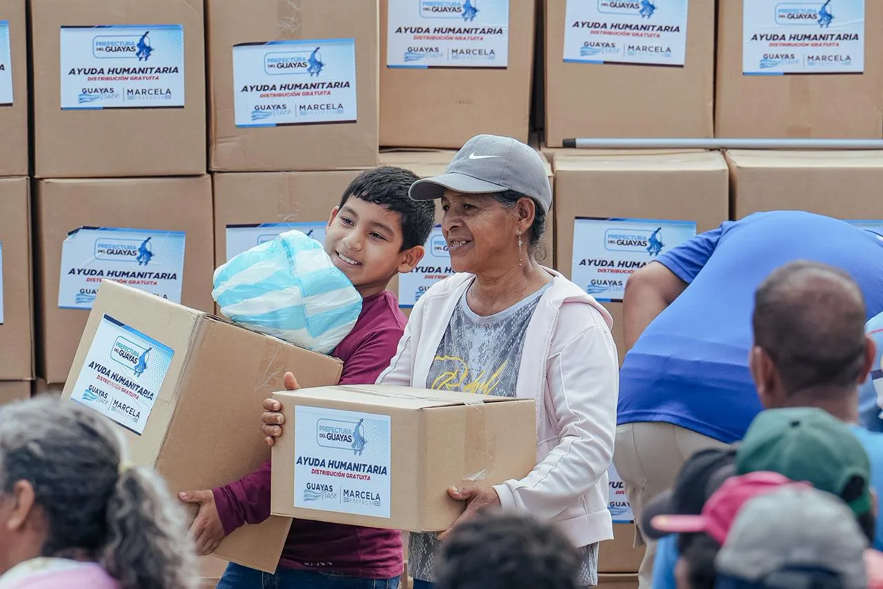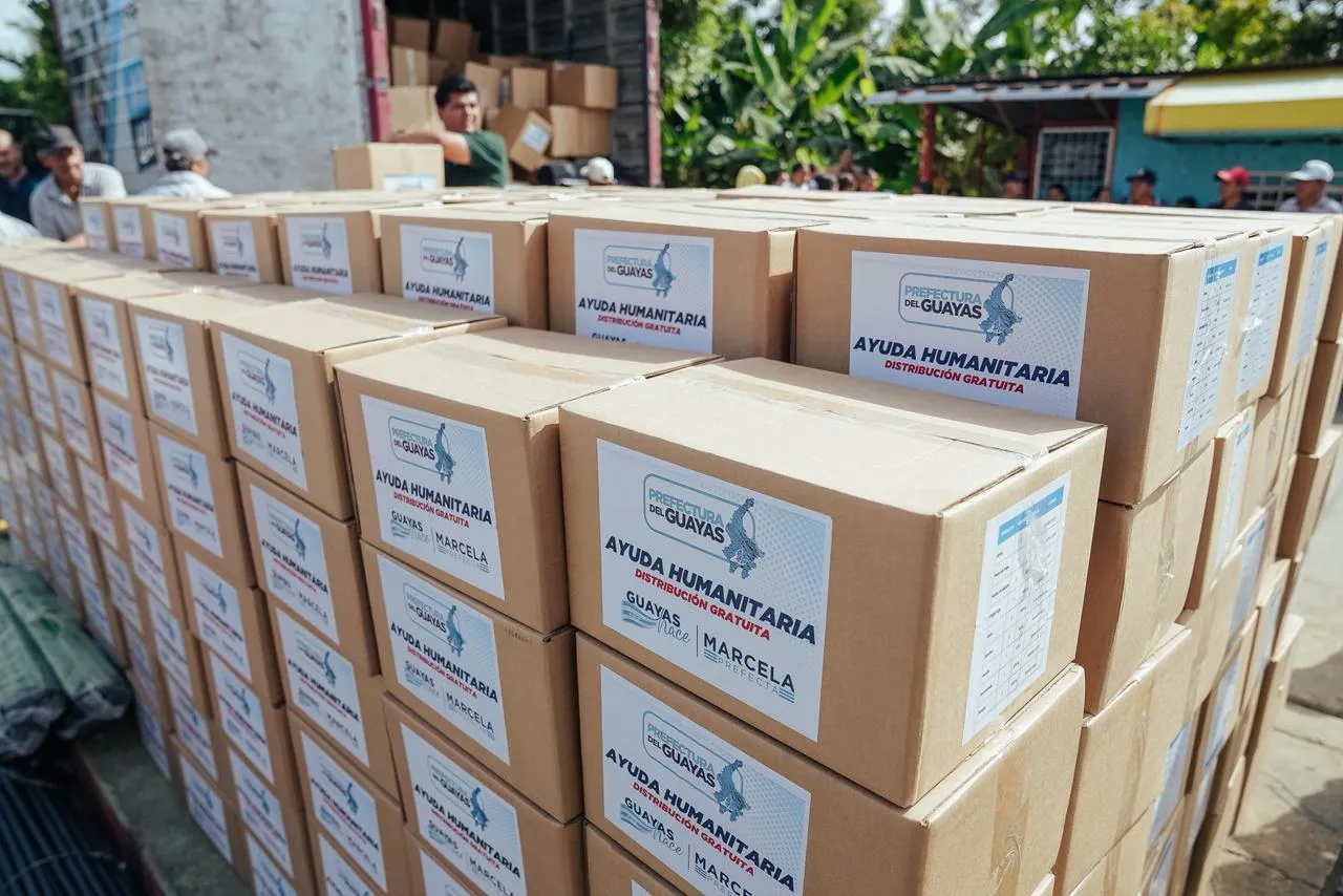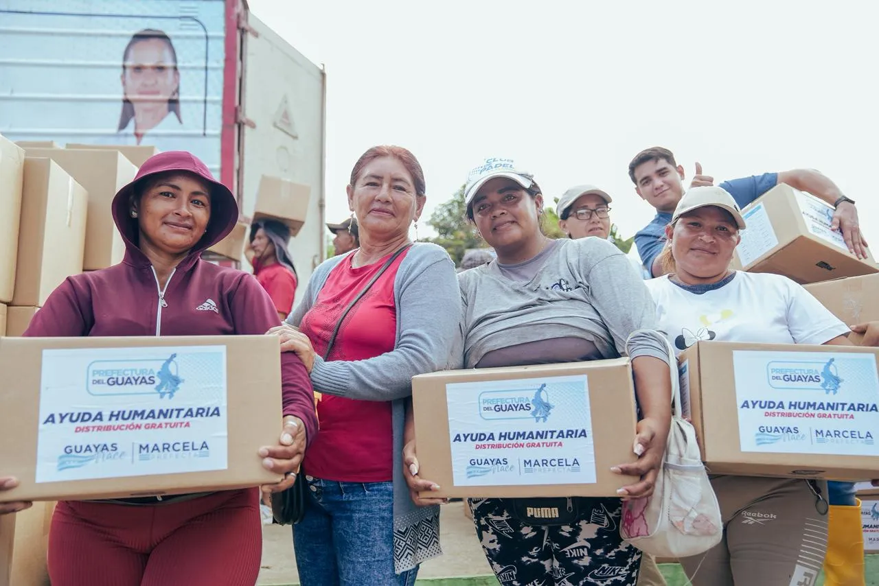 La Prefectura del Guayas entregó kits de Ayuda Humanitaria que cubren varios días de consumo a familias de cinco recintos, mientras mantiene su despliegue de atención en el cantón.