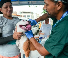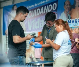 Las mascotas de las familias afectadas por la emergencia, también reciben atención completamente gratuita. En este caso, la brigada veterinaria gestiona cuadros con afecciones respiratorias y oculares, producto del humo y la contaminación ambiental registrada en la zona.
