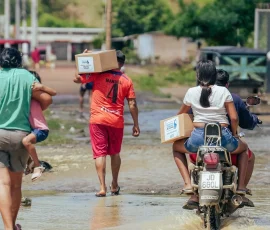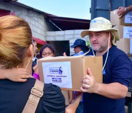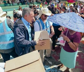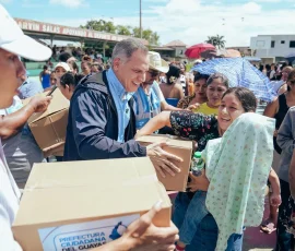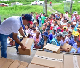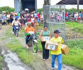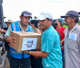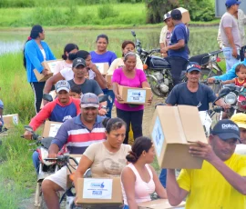 El viceprefecto Carlos Serrano abanderó el equipo que llegó hasta La Primavera, en Petrillo, Nobol. “No hay descanso frente a la emergencia. Estamos atentos toda la semana, 24/7, predispuestos para ustedes”, enfatizó la autoridad, al reiterar que la institución mantiene su despliegue permanente para responder ante las contingencias. Macarena López recibió uno de los más de 300 kits de ayuda humanitaria que fueron entregados en la zona. Ella agradeció a la prefecta Marcela Aguiñaga por el apoyo brindado, pues destacó que, en esta época, muchas personas no pueden salir de sus casas debido a las lluvias.