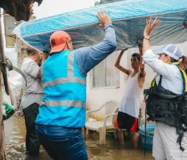 Ante la crisis que vive Milagro, declarado en alerta roja por inundaciones y el desbordamiento del río, como producto de intensas lluvias, el Gobierno Provincial del Guayas mantiene un amplio despliegue institucional para atender y acompañar a más de 1000 familias afectadas. La Prefecta Marcela Aguiñaga lideró el contingente que llegó, de manera prioritaria, a sectores como San Miguel, La Unión y Bellavista. Los casos más críticos, de personas que perdieron gran parte de sus bienes, recibieron 500 kits de alimentos y 500 colchones y toldos. También se desarrollaron brigadas médicas, veterinarias y de fumigación, de forma paralela a la gestión efectuada desde el Convoy del Cuidado, superando las 1000 atenciones durante la jornada. Los equipos trabajan de forma articulada en territorio, acercando asistencia humanitaria casa por casa, con el objetivo de garantizar ayuda a quienes más lo necesitan.