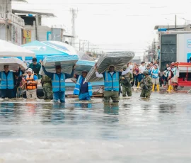 «La inundación ha sido tal que hemos tenido más de 20.000 personas afectadas. Tenemos el reporte de más de 44 emergencias y nosotros como Prefectura del Guayas hemos atendido a más de 10.000 personas en la provincia», señaló Aguiñaga. Durante su intervención, aprovechó para hacer un firme llamado a la Empresa Pública de Agua para que active las bombas de impulsión responsables de facilitar el desfogue en zonas anegadas, con el fin de aliviar la presión hídrica, clave para la mitigación de la emergencia. «Necesitamos que active las bombas en el estero Las Damas; tienen bombas para sacar el agua y no se han puesto operativas. Nosotros hemos limpiado ese estero, hemos limpiado el río Milagro y estero Belín, que son zonas del área de influencia y eso ha permitido que el agua baje», puntualizó.