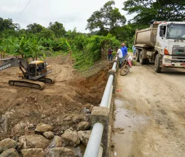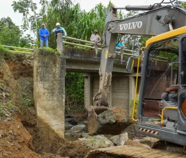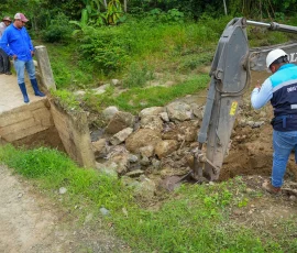 Se construye un muro de protección en el puente sobre el río Quinteros, en Colimes, Guayas. Además, en el límite provincial, se activó un nuevo frente de trabajo