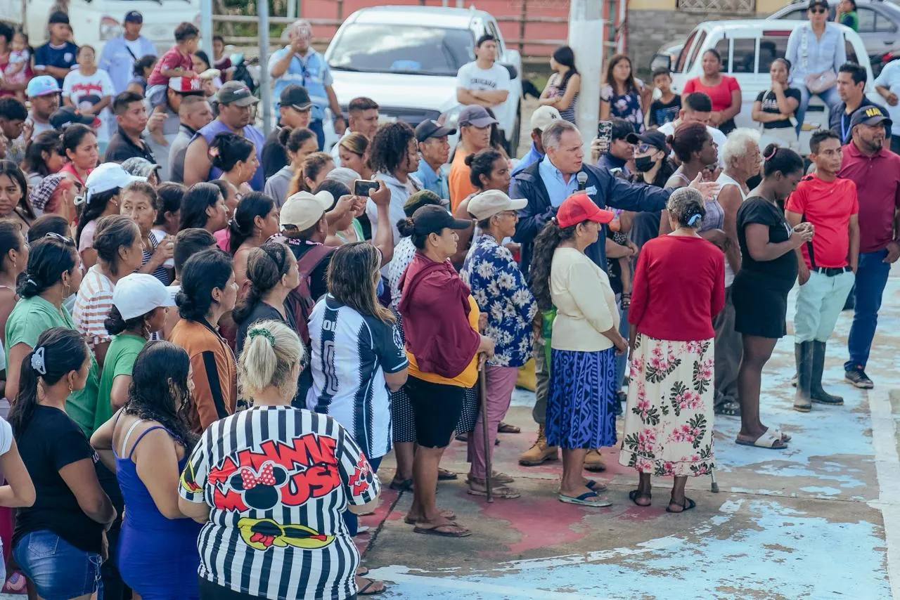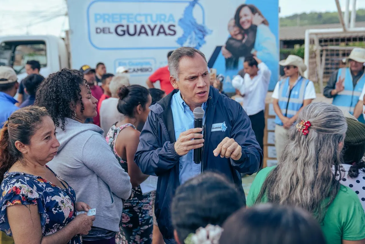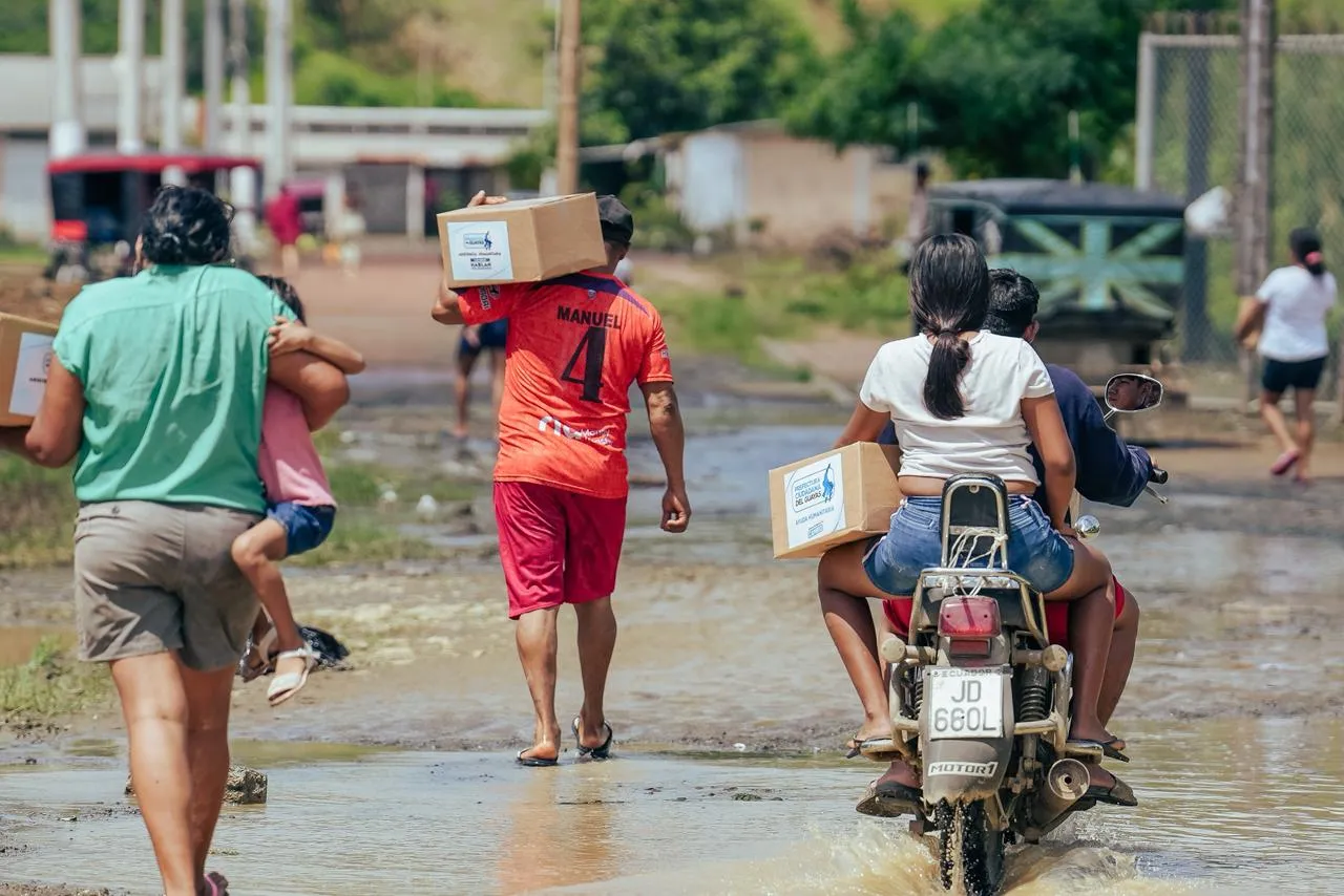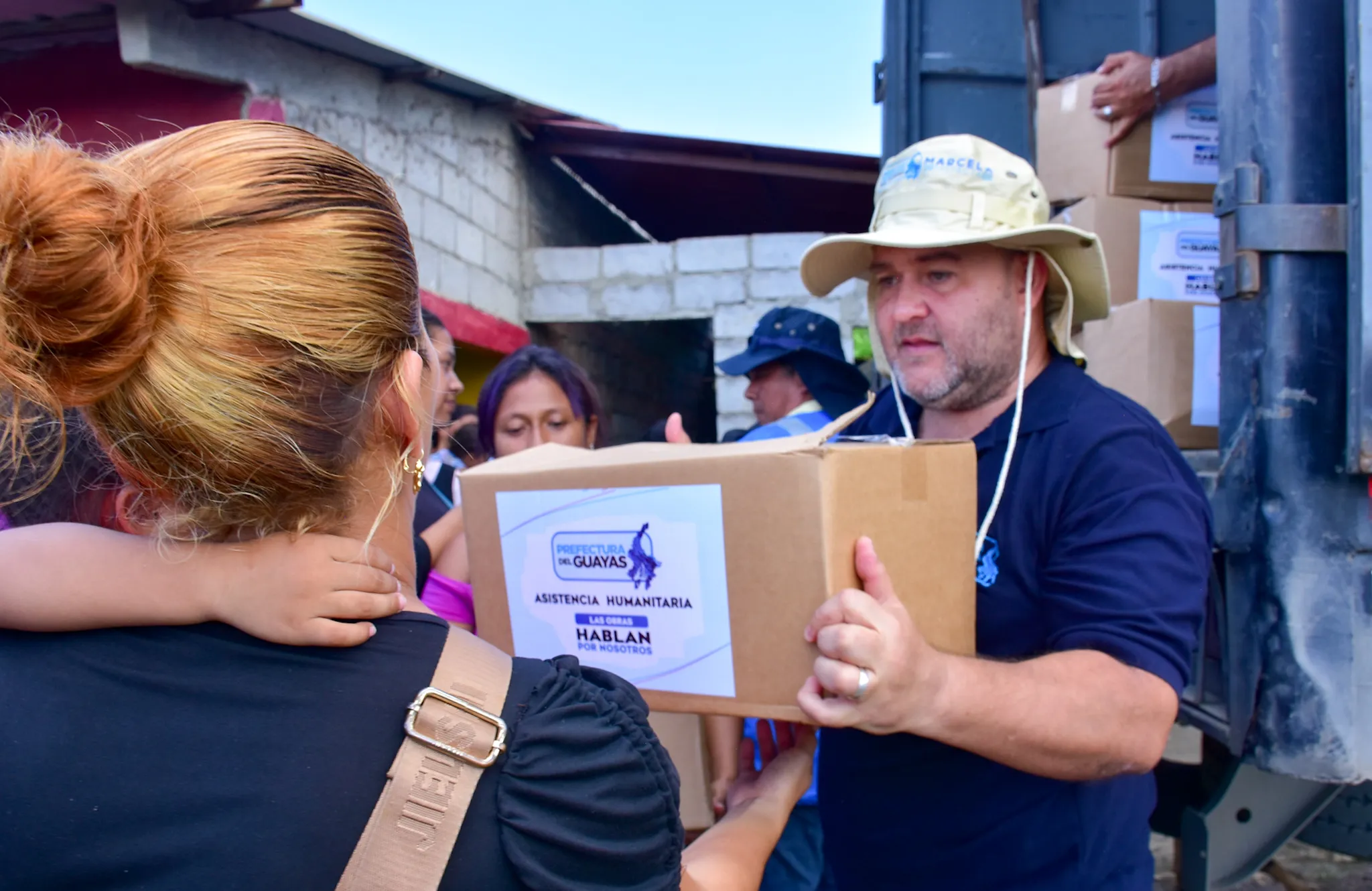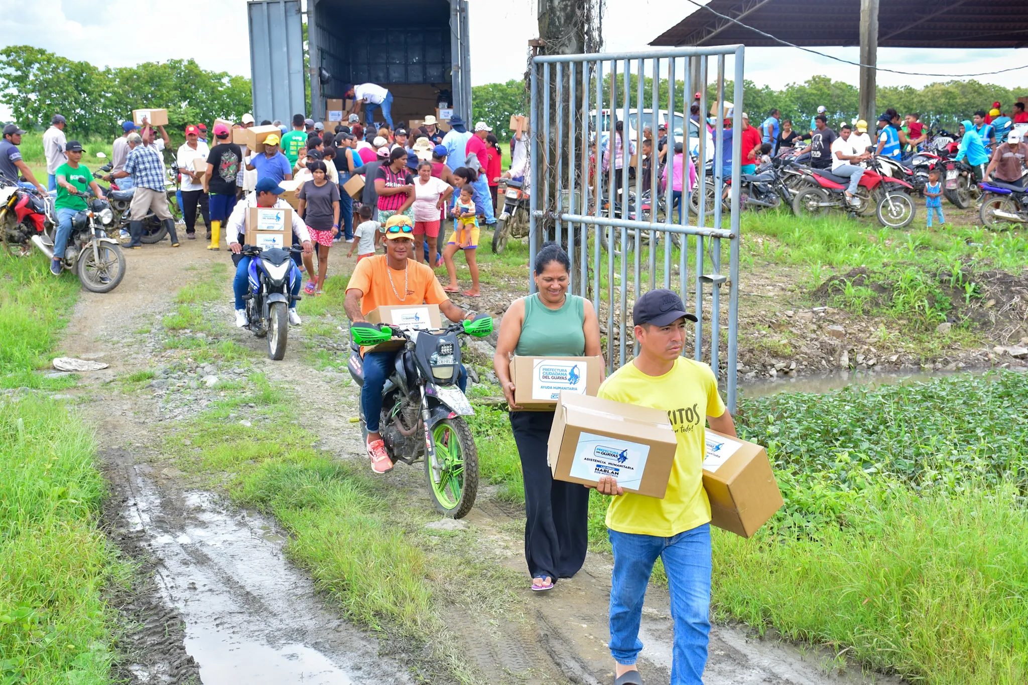 El viceprefecto Carlos Serrano abanderó el equipo que llegó hasta La Primavera, en Petrillo, Nobol. “No hay descanso frente a la emergencia. Estamos atentos toda la semana, 24/7, predispuestos para ustedes”, enfatizó la autoridad, al reiterar que la institución mantiene su despliegue permanente para responder ante las contingencias. Macarena López recibió uno de los más de 300 kits de ayuda humanitaria que fueron entregados en la zona. Ella agradeció a la prefecta Marcela Aguiñaga por el apoyo brindado, pues destacó que, en esta época, muchas personas no pueden salir de sus casas debido a las lluvias.