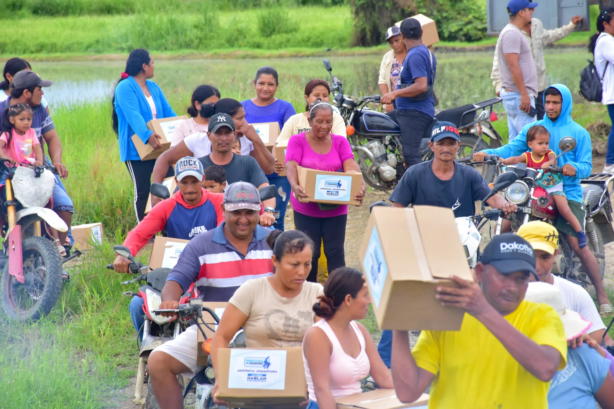 En una jornada maratónica, el Gobierno Provincial del Guayas desplazó personal técnico y administrativo a zonas críticas de los cantones Durán, Nobol, El Empalme y Naranjal, para entregar ayuda humanitaria a más de 700 familias afectadas por las lluvias e inundaciones, durante este fin de semana en que se declaró una alerta roja por la temporada invernal.
