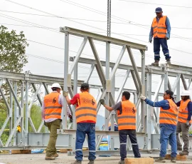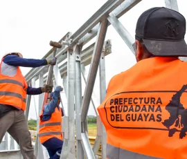 Técnicos de la Dirección de Concesiones de la Prefectura Ciudadana del Guayas, trabajan actualmente en el ensamblaje del primer puente bailey de 30 metros de longitud, que se apoyará sobre los estribos de la estructura afectada en el cantón Naranjal, como producto de un atentado con explosivos, registrado el pasado 15 de octubre. La tarea dispuesta por la prefecta Marcela Aguiñaga, se enfoca en restablecer el tráfico de esta zona, donde circulan más de 12.000 vehículos a diario, especialmente carga exportable del litoral.