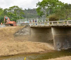 De forma simultánea, los obreros con el uso de maquinaria pesada, avanzan en la construcción de los nuevos estribos que sostendrán los dos puentes que se instalarán provisionalmente, mientras se estudia una solución definitiva. José Cabezas, técnico de concesiones, señaló que esta fase incluye la creación de rutas de acceso de 150 metros, cuya labor tomará alrededor de 15 días hasta que la vía esté lista para su uso.