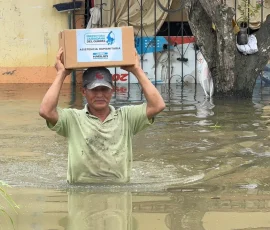 “Estos días han sido tremendos, han sido terribles… (Ahora) nos sentimos mejor apoyados por la Prefectura”, destacó Primitivo Segura, dirigente del recinto Doce Hermanos. A su sector, que aún está anegado, llegaron técnicos de la Institución Provincial con kits de primera respuesta humanitaria; se trata de alimentos no perecibles que les permitirán nutrirse por algunos días hasta que bajen las aguas y ellos puedan retomar la normalidad de sus vidas.