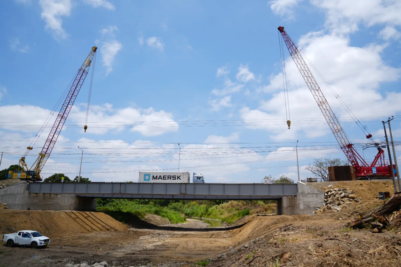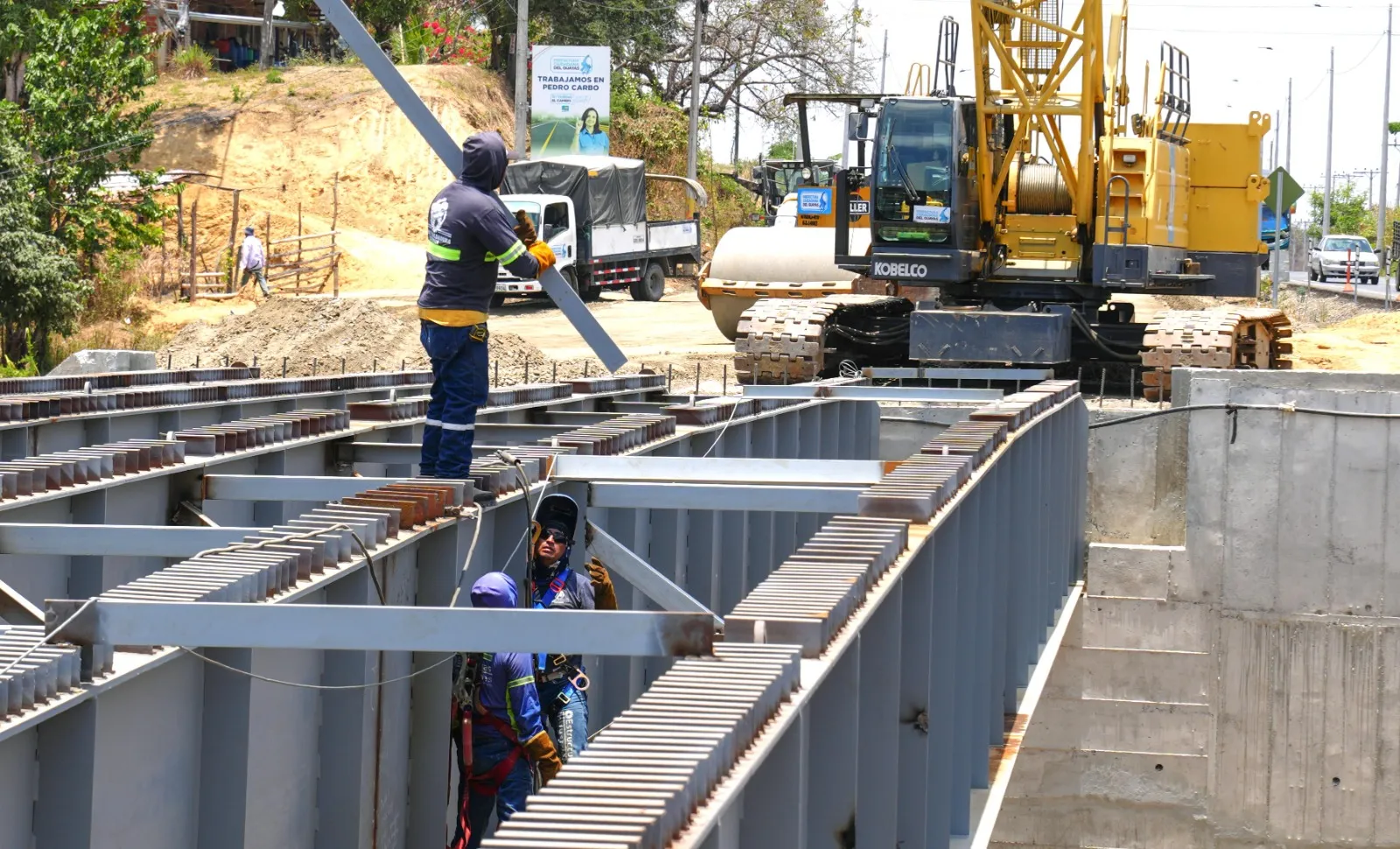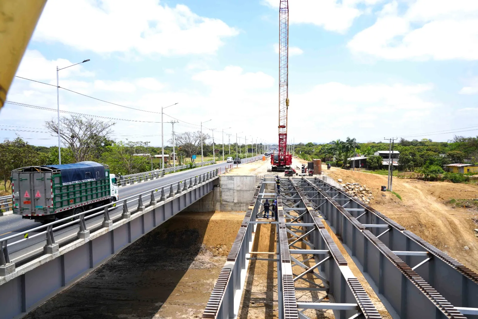 La via Nobol-La Cadena se amplía a 4 carriles, y el levantamiento de un puente sobre el estero Las Aguas, presenta un avance del 78%