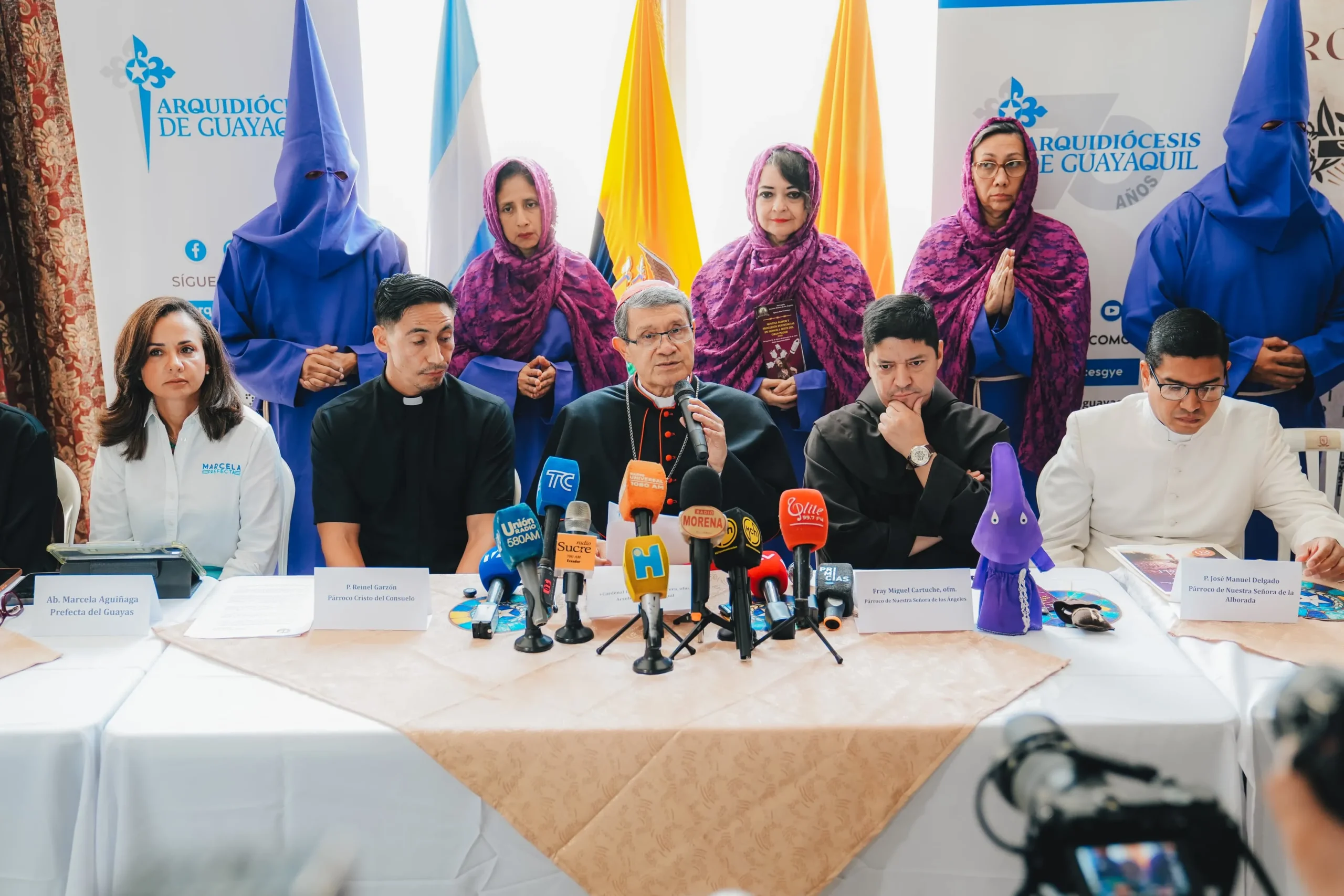 Este martes, la Prefectura del Guayas presentó el contingente institucional que desplegará durante la sexagésima sexta edición de la Procesión del Cristo del Consuelo, una de las expresiones de fe más multitudinarias del Ecuador, que se realizará el viernes 3 de abril en el suroeste de Guayaquil, a partir de las 07:00. Durante una rueda de prensa, la prefecta Marcela Aguiñaga destacó el profundo significado social y espiritual de esta tradición que cada Viernes Santo congrega a miles de creyentes. La actividad fue presidida por el Cardenal Luis Cabrera, involucrando autoridades eclesiásticas, municipales, de la Policía Nacional y el Cuerpo de Bomberos.
