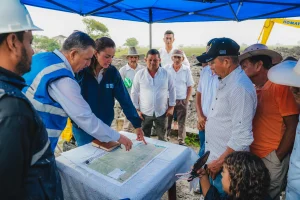 En Salitre, la Prefecta participó, además, en la puesta en marcha de un importante proyecto hidráulico, que fortalecerá el sistema de riego y drenaje productivo en el recinto Potosí y zonas de influencia. En la construcción de esta obra, se invierten $1,5 millones con un plazo contractual de 240 días. De forma directa beneficia a 70 usuarios de la Junta de Riego y Drenaje Unión y Progreso, y de manera indirecta, llega a más de 57.000 habitantes del sector rural, con cientos de hectáreas productivas.