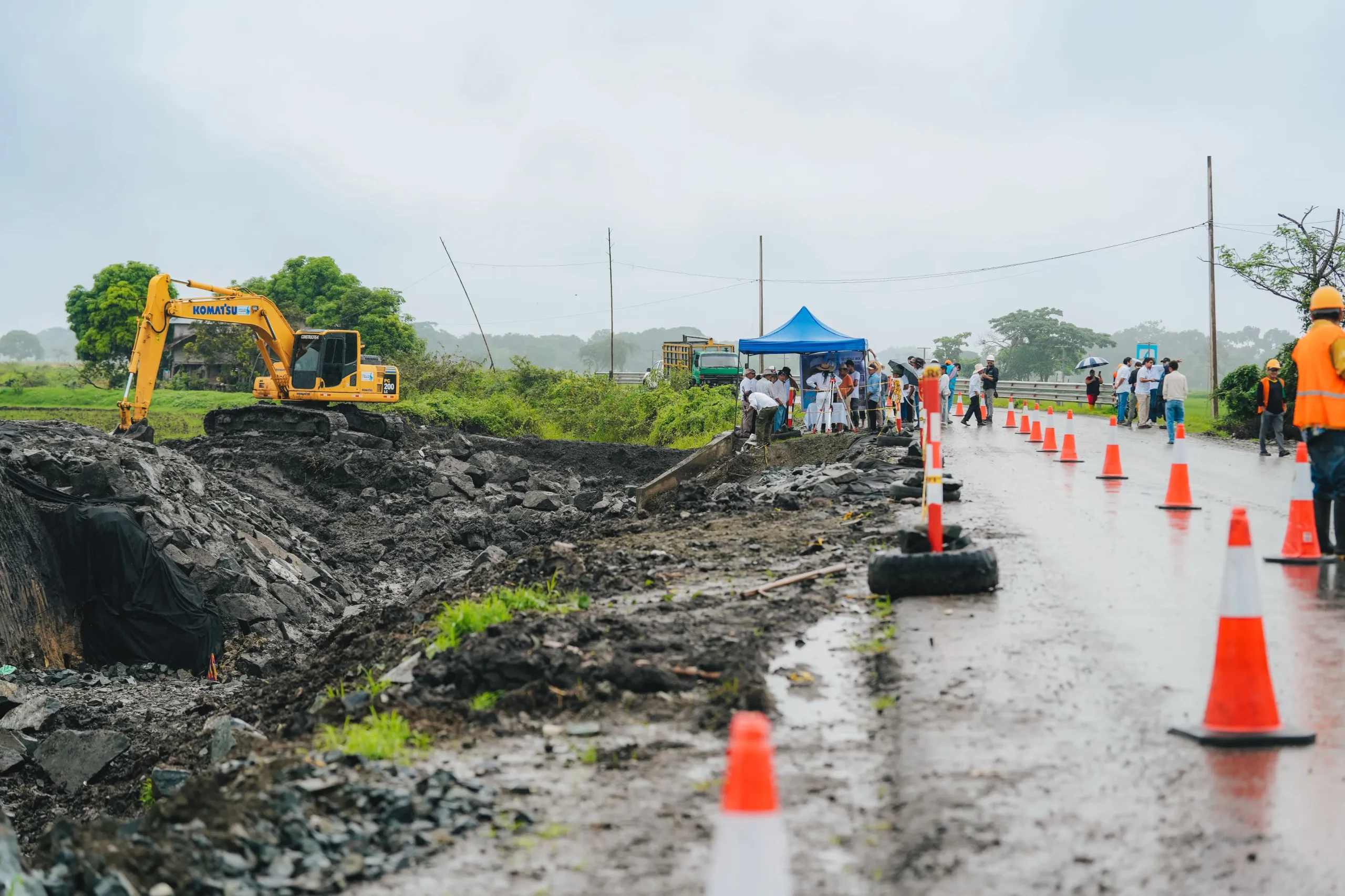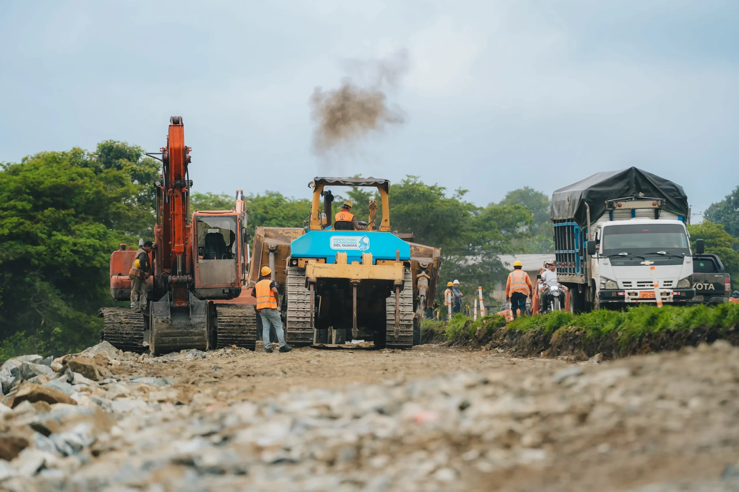 La Aurora-La T de Las Maravillas, es utilizada a diario por aproximadamente 8.500 vehículos, conectando los cantones Samborondón, Daule, Salitre, Nobol, Isidro Ayora, Santa Lucía, Lomas de Sargentillo, Pedro Carbo, Palestina, Balzar y El Empalme. Es una arteria que también sirve como ruta alterna en situaciones de contingencia. Durante la inspección, en territorio, la Prefecta constató un avance del 10% de ejecución que incluye: excavaciones para el reemplazo y mejoramiento de la estructura del suelo, retiro de material agrícola existente y colocación de enrocado para estabilizar la base del pavimento; colocación progresiva del material de mejoramiento estructural y reconformación paralela de canales de drenaje. “Seguimos trabajando, a pesar del periodo invernal. Esto es progreso y desarrollo y, sin duda alguna, dinamizamos la economía del sector”, señaló Aguiñaga.