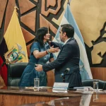 La prefecta Aguiñaga le hizo un reconocimiento especial al consejero y alcalde de Durán, Luis Chonillo. “Estamos contigo, el miedo no nos va a vencer”, le dijo en referencia al atentado que sufrió el primer día de funciones.