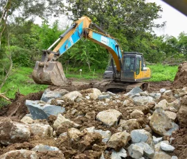En sectores como Mesada de Abajo (Colimes) y la vía Balzar-Los Palitos-Palenque (Balzar), la intervención fue clave para habilitar el paso, mientras que, en cantones como Daule, Naranjal y Balao, se ejecutan trabajos urgentes para contener la erosión y proteger a las comunidades frente a inundaciones. “Hoy tenemos una Prefecta que se preocupa por su gente, que atiende y responde de inmediato ante el llamado de sus ciudadanos.”, señaló Jofre Rubio, habitante de Mesada de Abajo, donde los equipos técnicos y operativos de la Prefectura realizan un desazolve y ejecutan la construcción de un badén.