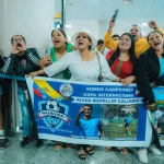 El área de arribos internacionales del aeropuerto José Joaquín de Olmedo, en Guayaquil, era una fiesta cerca de la medianoche del pasado lunes. Carteles, música, gritos y vivas provenían de orgullosos padres y cientos de asistentes que llegaron hasta la terminal aérea para recibir a las selecciones Sub 14 y Sub 16 de las Escuelas de Fútbol de la Prefectura Ciudadana del Guayas que participaron en la Copa River Medellín 2024, en Colombia.
