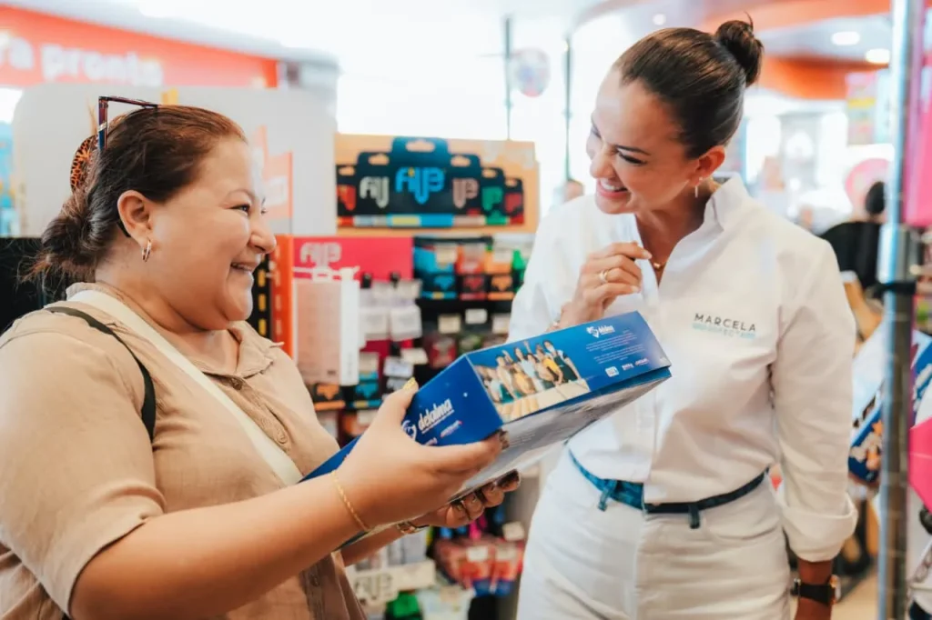 Cuidadoras de la Manzana de Monte Sinaí participaron en la colocación del producto en percha y su respectiva degustación. Melisa Rodríguez admitió que nunca imaginó llegar tan lejos: “pensé quedarme en una capacitación, pero gracias a nuestra prefecta Marcela Aguiñaga que está haciendo algo bonito por nosotras las mujeres que así tenemos cómo salir adelante”. María Pezo, en cambio, dijo sentirse realizada por haber participado en todo el proceso de producción, promoción y venta. “Ahora ya colaboro en mi hogar, hago este producto y puedo entender que el esfuerzo que hace una para elaborar un producto el fruto es este: poderlo vender”.