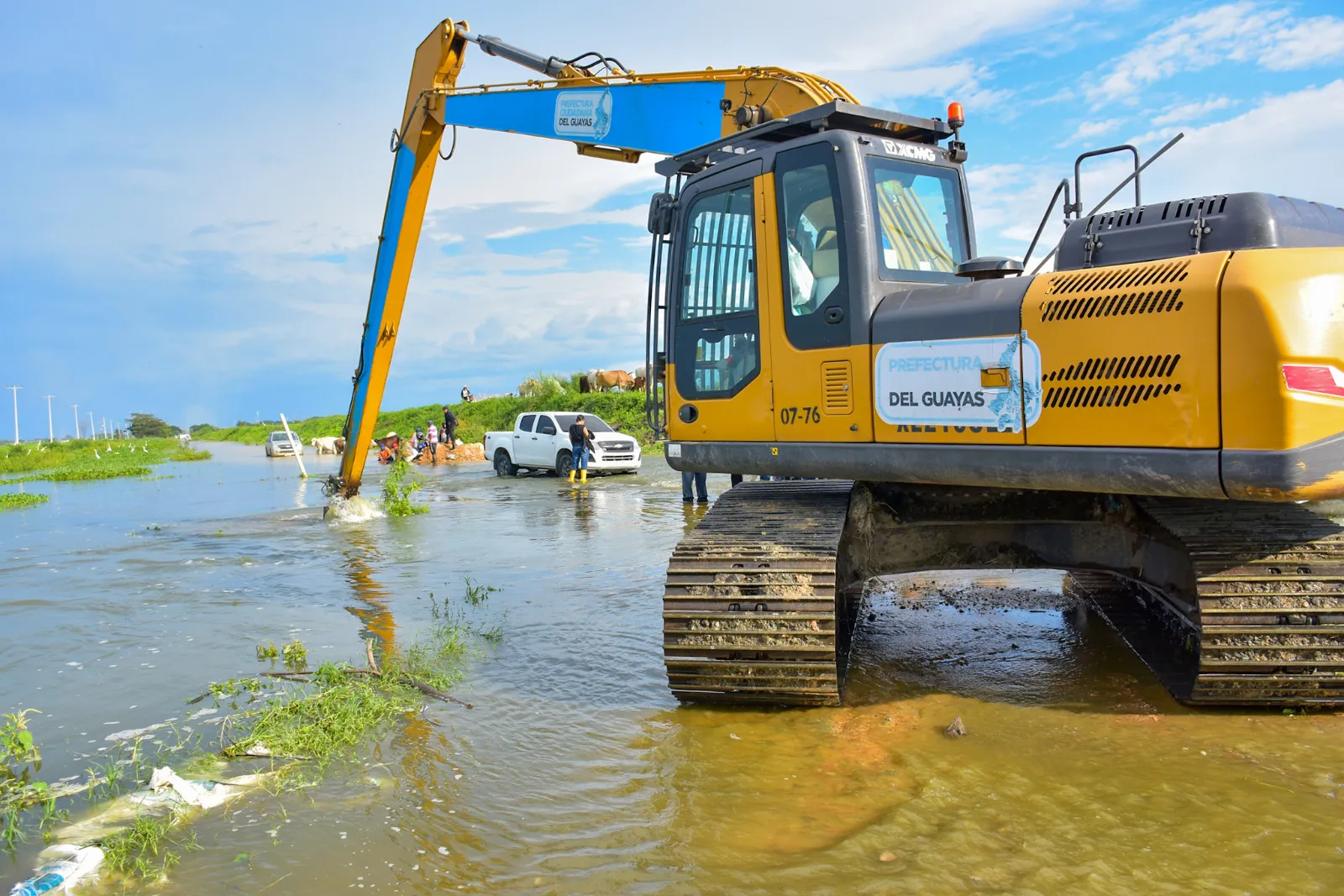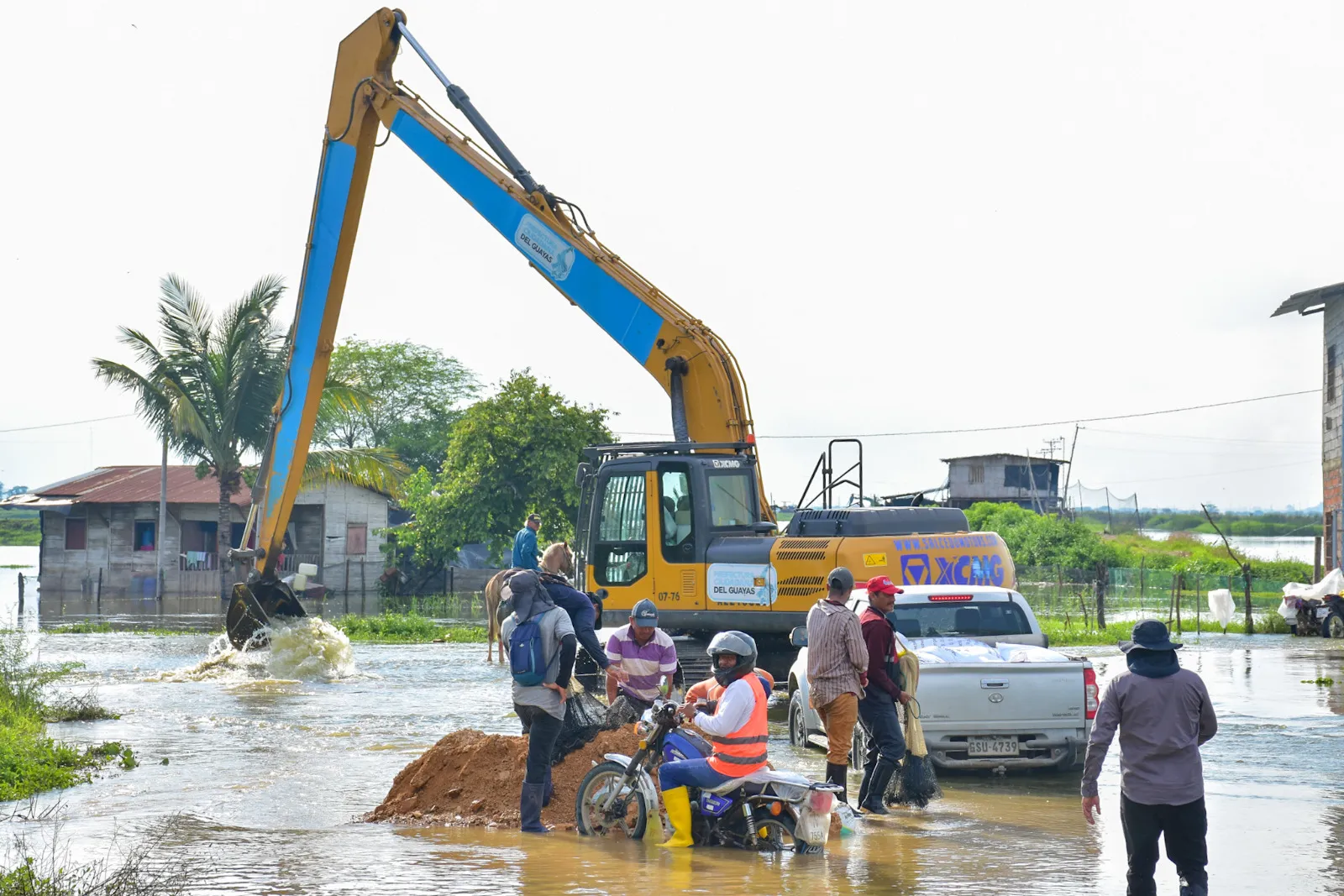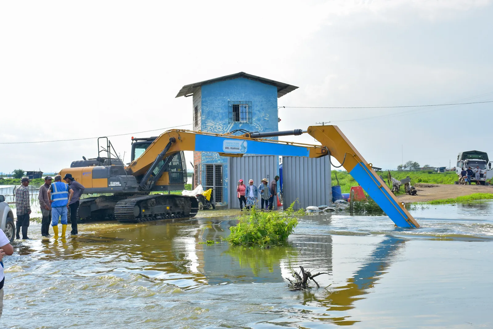 En el cantón Durán, la Prefectura del Guayas desplegó técnicos, maquinaria pesada y asistencia humanitaria para atender de manera inmediata dos recintos rurales, afectados por inundaciones