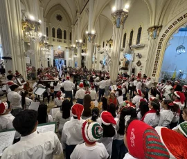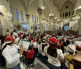 Como parte de su trabajo de formación artística en la provincia, 150 niñas, niños y jóvenes integrantes de Guayas Sinfónica, programa impulsado por la Prefectura del Guayas, participaron en el concierto ‘Sinfonía de Navidad’. La Basílica Menor de Nuestra Señora de La Merced fue el escenario de la jornada musical que reunió al coro y la orquesta, para interpretar un repertorio que combinó villancicos tradicionales como ‘Mi burrito sabanero’, ‘Jingle Bells’ y un mosaico de canciones navideñas ecuatorianas.