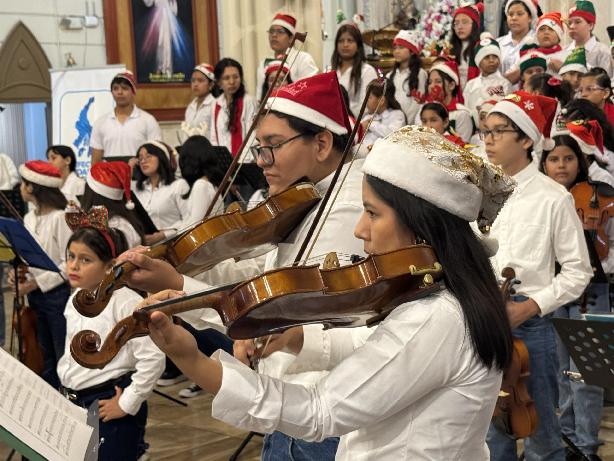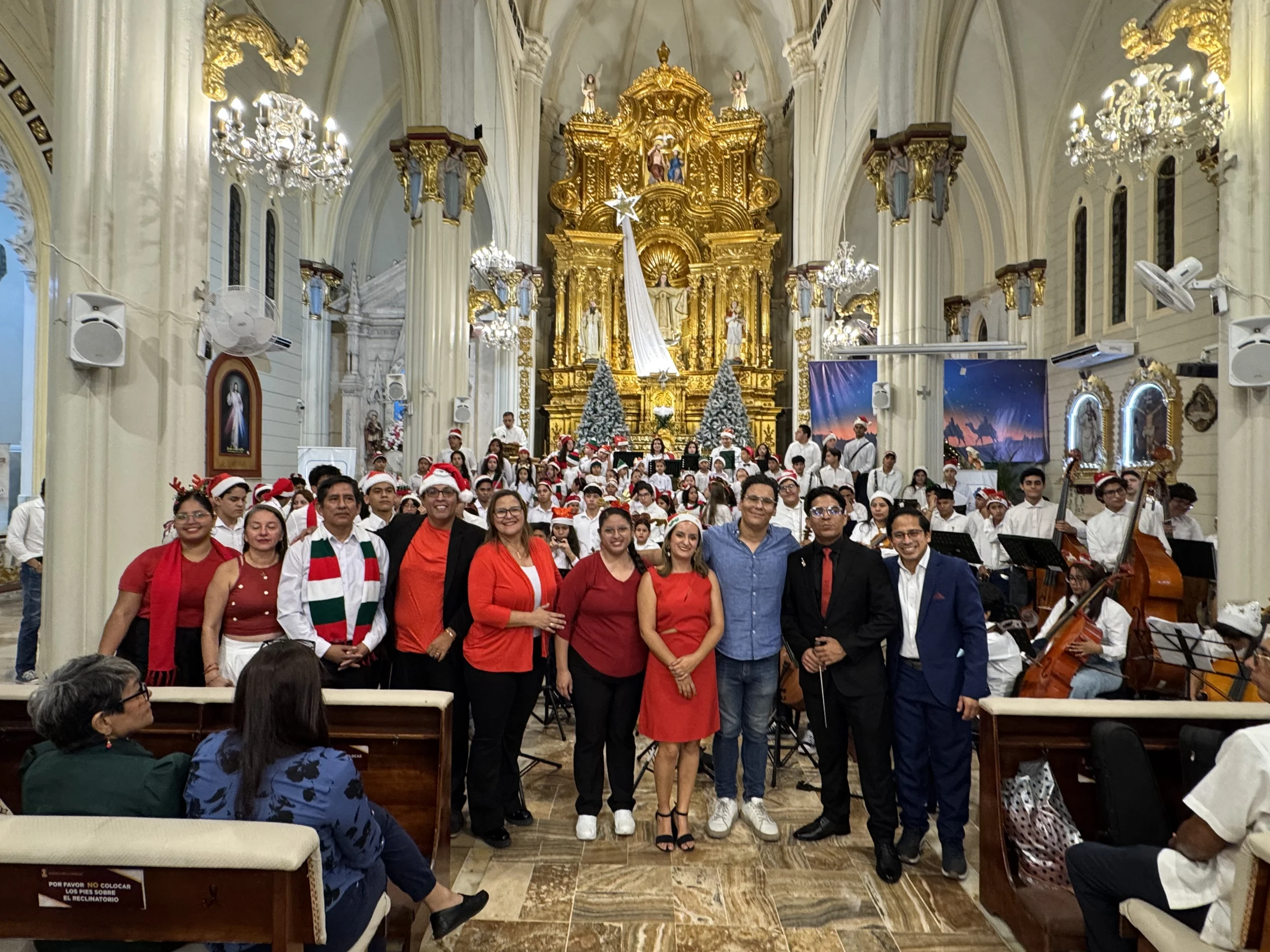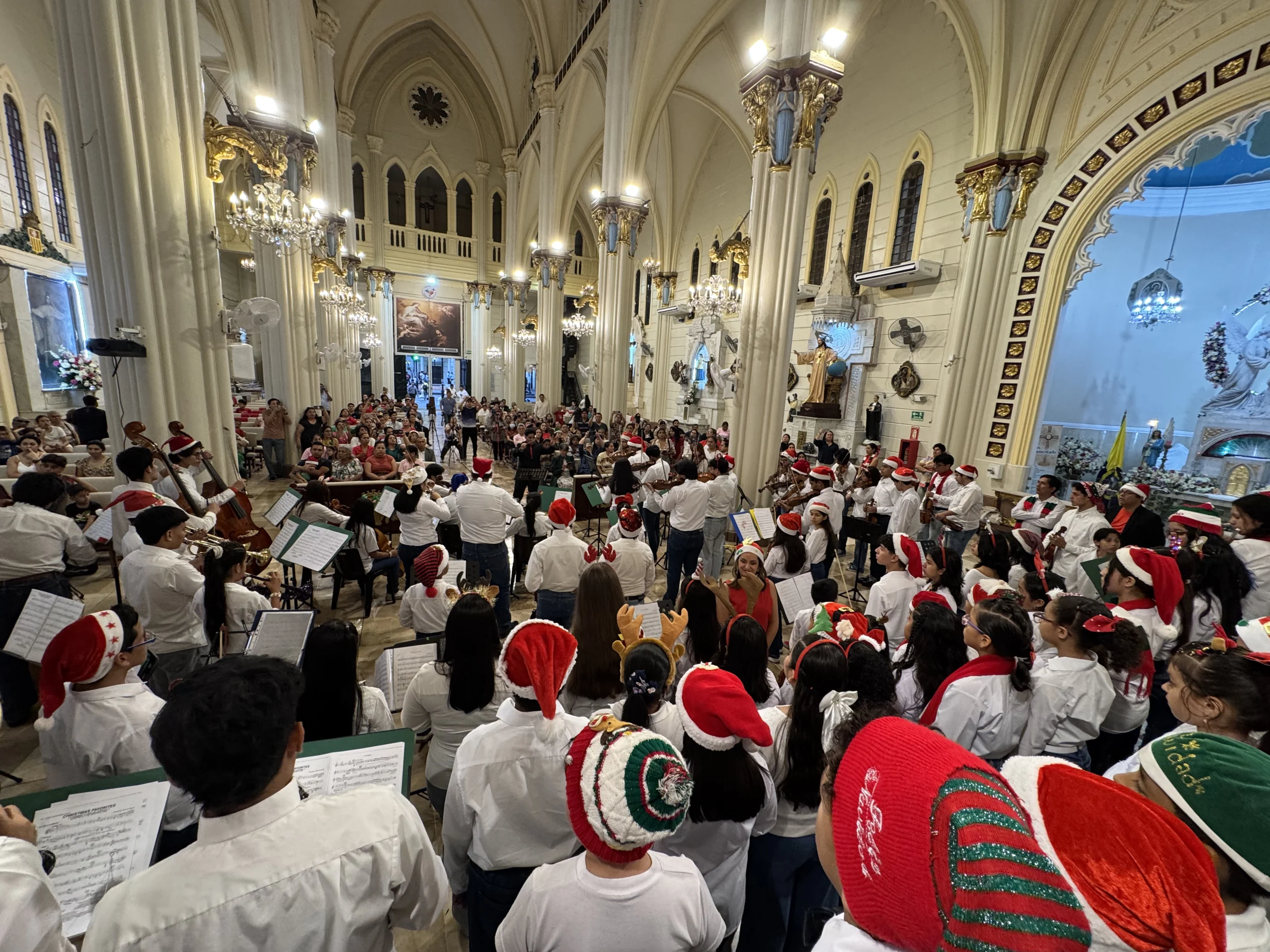 Como parte de su trabajo de formación artística en la provincia, 150 niñas, niños y jóvenes integrantes de Guayas Sinfónica, programa impulsado por la Prefectura del Guayas, participaron en el concierto ‘Sinfonía de Navidad’. La Basílica Menor de Nuestra Señora de La Merced fue el escenario de la jornada musical que reunió al coro y la orquesta, para interpretar un repertorio que combinó villancicos tradicionales como ‘Mi burrito sabanero’, ‘Jingle Bells’ y un mosaico de canciones navideñas ecuatorianas.