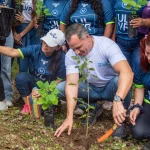 En el marco del Día Mundial del Medio Ambiente, el viceprefecto del Guayas, Carlos Serrano Bonilla, compartió este lunes 5 de junio con alumnos universitarios la siembra de 100 árboles nativos. Así dio inicio al Plan de Reforestación Provincial que la Prefectura Ciudadana prevé extender por Guayas con el objetivo de restaurar áreas que han sido degradadas por el cambio climático.