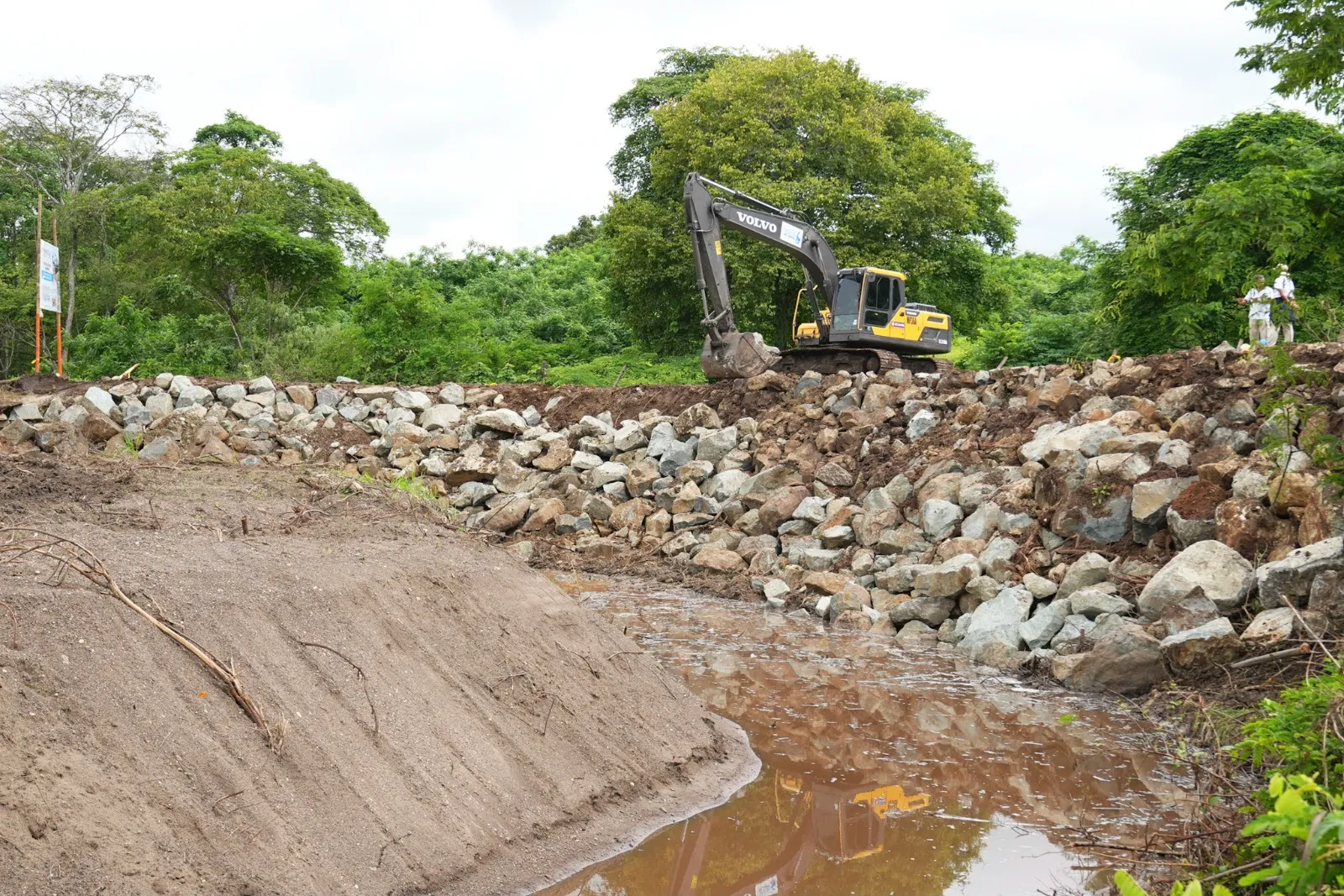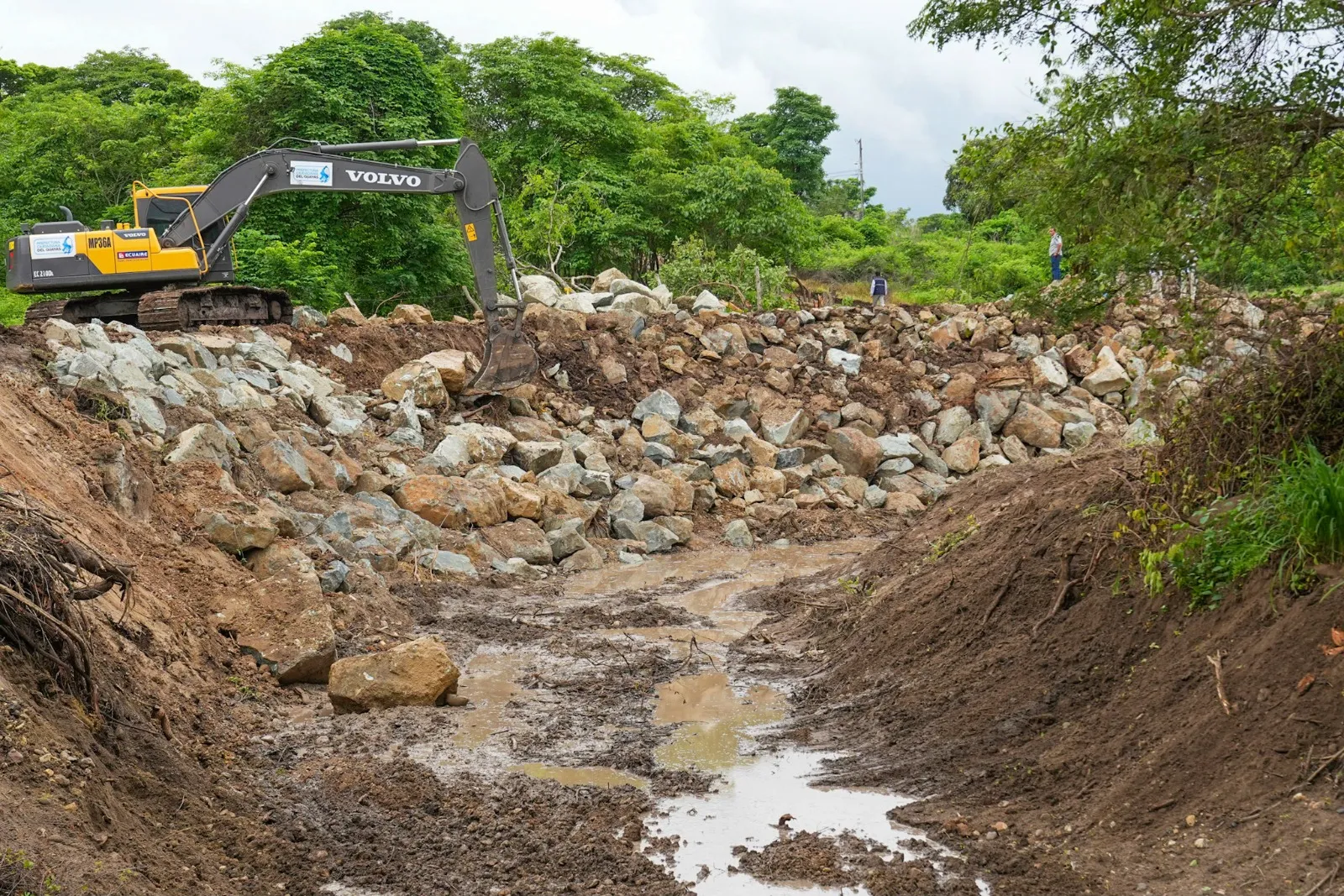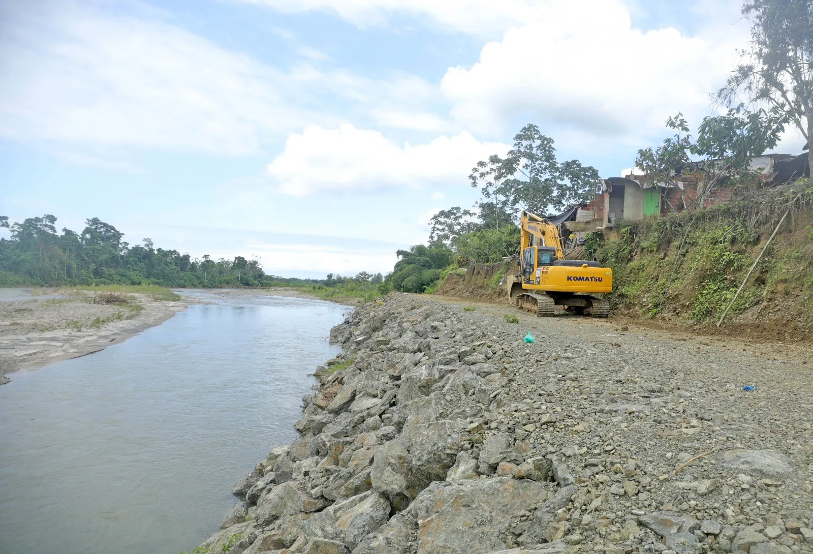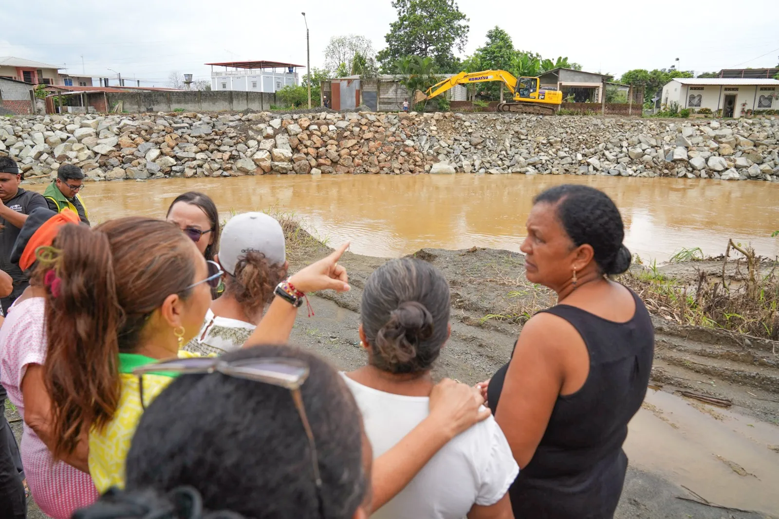 En Simón Bolívar, por ejemplo, se refuerza un muro con piedra escollera en un tramo de 103 metros en la ribera del río Los Amarillos, a su paso por la comunidad de Santo Domingo, para proteger a sus habitantes en un punto crítico, donde el río amenazaba con causar un socavón y destruir la única vía de acceso. “Este muro le ha cambiado la cara a Santo Domingo”, reconoció el dirigente comunitario Álex Salazar. Mientras que Alicia Vera, una de las beneficiarias, destacó el “buen trabajo de la Prefectura” porque “estas piedras son demasiado fuertes para que se caiga este muro”.