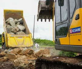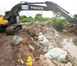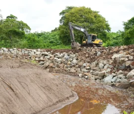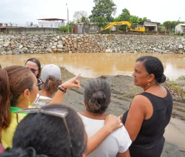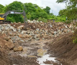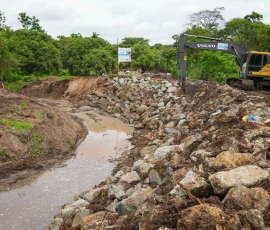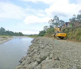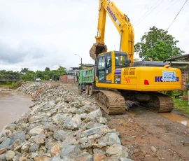 En Simón Bolívar, por ejemplo, se refuerza un muro con piedra escollera en un tramo de 103 metros en la ribera del río Los Amarillos, a su paso por la comunidad de Santo Domingo, para proteger a sus habitantes en un punto crítico, donde el río amenazaba con causar un socavón y destruir la única vía de acceso. “Este muro le ha cambiado la cara a Santo Domingo”, reconoció el dirigente comunitario Álex Salazar. Mientras que Alicia Vera, una de las beneficiarias, destacó el “buen trabajo de la Prefectura” porque “estas piedras son demasiado fuertes para que se caiga este muro”.