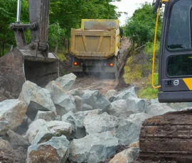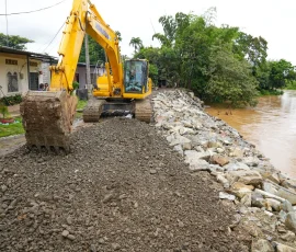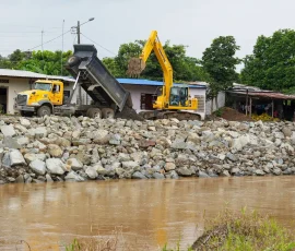 En el sector Las Damas, en Naranjal, maquinaria ingresó para construir un muro de gaviones de 70 metros de longitud y hasta 4,65 metros de alto, para proteger a las casas de la erosión, causada por las lluvias y las crecidas del río Jagua. Varias viviendas quedaron al borde de lo que ahora es un precipicio y han sido abandonadas por moradores como Noemí Villamar. “La Prefectura siempre está ayudándonos. En el momento ahora estamos aliviados”, dijo.