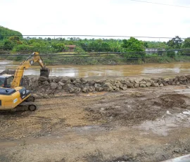 En Simón Bolívar, la Prefectura del Guayas protege la ribera del río Los Amarillos, con el refuerzo estructural de un muro para mitigar inundación en el sector Casa para Todos