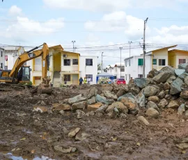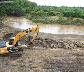 El Gobierno Provincial del Guayas activó un operativo de respuesta inmediata en el sector Casa para Todos, en Simón Bolívar, para mitigar las afectaciones causadas por el desbordamiento del río Los Amarillos, logrando que las viviendas del Plan Habitacional ya no se encuentren inundadas. Ante el incremento del caudal por las fuertes lluvias, la prefecta Marcela Aguiñaga dispuso el despliegue de maquinaria y contingente técnico para proteger a la población y salvaguardar el avance de una obra que se ejecuta en la ribera. El proyecto, que cubre un tramo de 490 metros con una inversión superior a los $400 mil, contempla la construcción de muros y el reforzamiento con piedra escollera para evitar la erosión del talud.