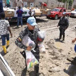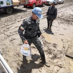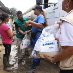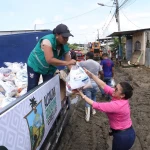 Una de esas zonas atendidas fue el barrio “50 Casas”, cuyas calles permanecen cubiertas de fango tras el desbordamiento del río Teaone. Sus 3.000 habitantes recibieron kits con alimentos no perecibles, agua potable, medicinas, ropa, productos de limpieza personal y comida para mascotas, en coordinación con la Alcaldía Ciudadana de Esmeraldas.