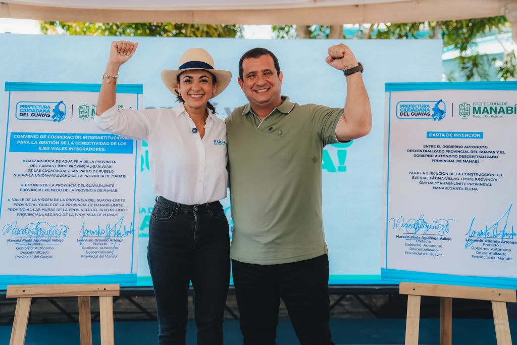 Desde hoy, las provincias de Guayas y Manabí escriben un nuevo capítulo de unidad territorial, tras la firma del convenio interinstitucional de conectividad que suscribieron la prefecta Marcela Aguiñaga y el prefecto Leonardo Orlando con la finalidad de promover tres nuevos ejes viales. Estos son: