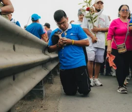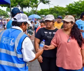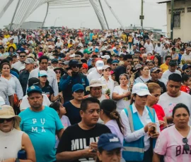 Darlin Tigrero llegó con su papá y su hermana, desde la parroquia Febres Cordero, para pedir por la salud de su mamá. Ella se detuvo en uno de los puntos de hidratación y destacó el trabajo del Gobierno Provincial del Guayas y de la prefecta Marcela Aguiñaga en la logística. “Me parece algo muy lindo que apoye, la gente es muy agradecida ante todo esto de aquí”, indicó.