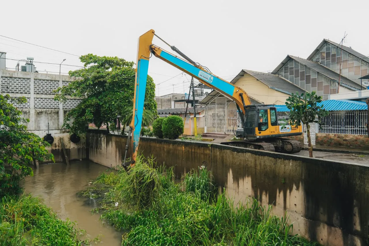 Aguiñaga, verificó, además, otros trabajos clave en dos puntos históricamente vulnerables a desbordamientos y anegamientos. Equipos técnicos de la Dirección de Riego, Drenaje y Dragas en articulación con la alcaldía local, ejecutan la limpieza integral del cauce del estero Las Damas, en el sector San Sebastián, mediante el uso de excavadora de oruga de brazo largo.