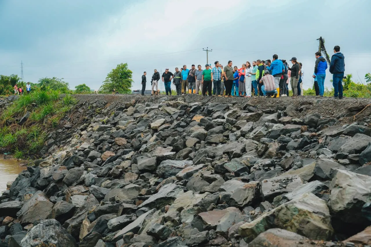 La ejecutiva guayasense arrancó su jornada, supervisando la reconformación y protección del talud, con muro de piedra escollera de 50 metros de longitud y 5 metros de altura, en la parroquia Chobo. La estructura está diseñada para contener la erosión y estabilizar el borde del río Milagro, ante el aumento del caudal. “Estas obras son preventivas, pero también hay que ser corresponsables porque muchas de las cosas que sacamos también son basura. Hay que hacer causa común. Ahora estamos en emergencias y primero es salvar la vida”, señaló la autoridad provincial.