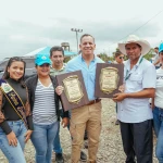 El presidente del GAD parroquial de Lorenzo de Garaicoa, Salomón Ortiz, entregó un reconocimiento a la prefecta Aguiñaga y al viceprefecto Serrano, por su destacada labor en beneficio de la comunidad garaicoeña.