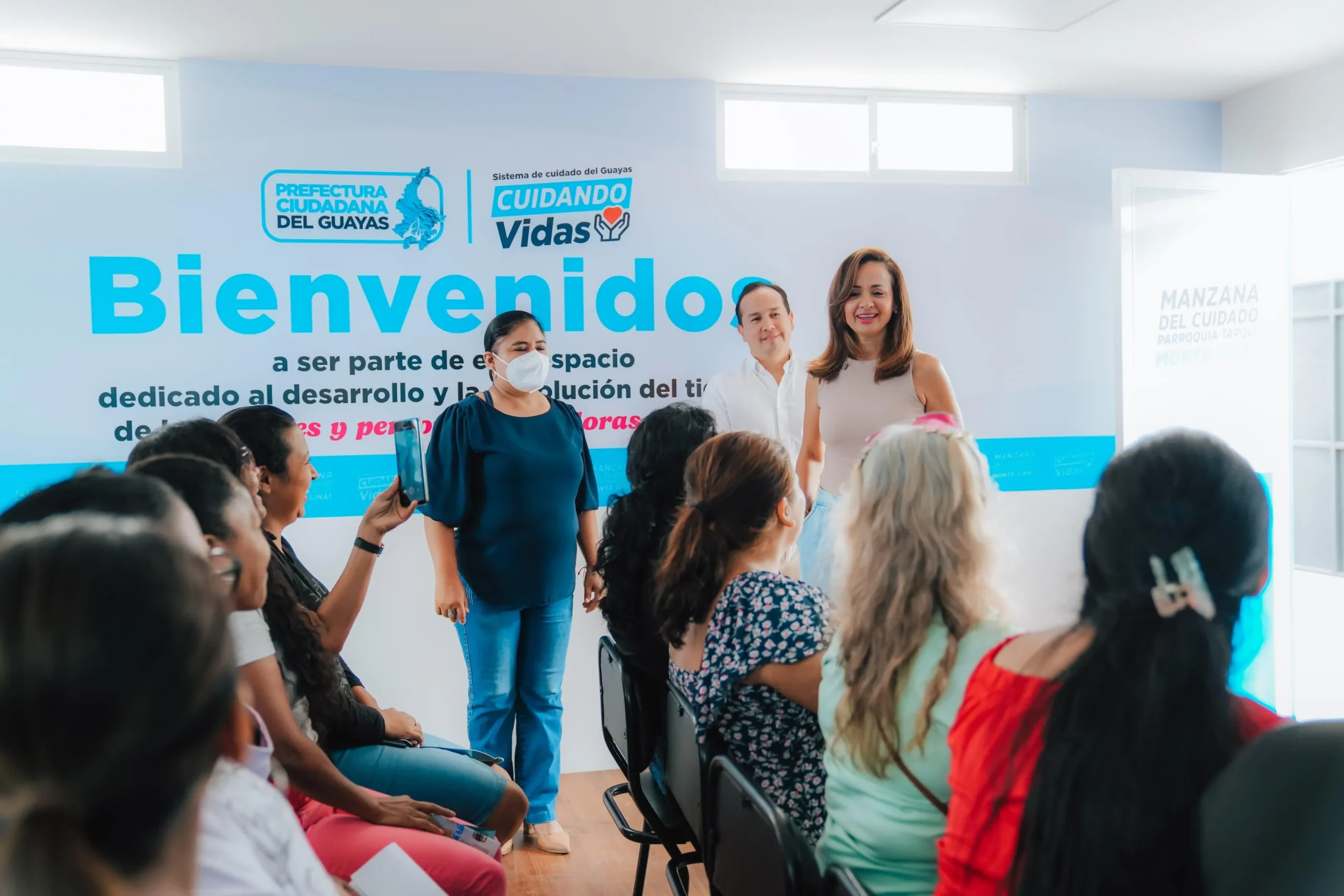 La Manzana del Cuidado inició sus actividades en Monte Sinaí para ayudar a transformar la vida de las mujeres cuidadoras del hogar. Y con ello no solo se marca un nuevo hito en la gestión de la prefecta Marcela Aguiñaga, sino que también es la primera que se construye en alianza con la empresa privada, concretamente, con Almacenes Tía.