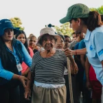 Juan Vargas, de 73 años, llegó con dificultad apoyado en un palo que le sirve de bastón hasta la brigada médica, donde le dieron prioridad a él y a otras personas en situación de vulnerabilidad. A pesar de las dificultades que le causa el invierno, se sentía feliz por “la ayudita” que le dio la prefecta Marcela Aguiñaga.