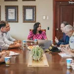 La prefecta del Guayas, Marcela Aguiñaga Vallejo, y el viceprefecto Carlos Serrano Bonilla, se reunieron con el ministro del Interior, Juan Zapata, en el marco de un primer encuentro entre autoridades de los gobiernos Central y Provincial, para definir acciones en la lucha contra la delincuencia.