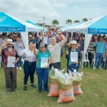 Entre los beneficiarios estaba Karen López, del Grupo de Agricultores La Porfía, quien expresó su profundo agradecimiento a la prefecta Marcela Aguiñaga. “Con los insumos recibidos, hoy mismo vamos a preparar la tierra. Esta ayuda nos da un impulso para seguir adelante en el campo”.