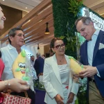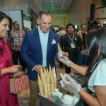La segunda autoridad de la provincia recorrió los distintos stands de la Convención Internacional del Banano junto a Pamina González, subdirectora de AEBE, donde pudo conocer innovadoras propuestas y degustó una variedad de alimentos y dulces elaborados a base de banano.