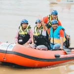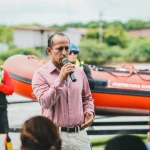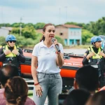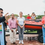 Luego, la prefecta Aguiñaga se trasladó hasta el cantón Salitre. Navegando un breve tramo del río Vinces, llegó el malecón de La Bocana, a bordo de la tercera lancha para salvamento acuático que donó al Cuerpo de Bomberos de la localidad, con su respectivo motor fuera de borda y equipamiento para salvamento acuático.
