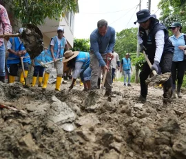 Más de 600 familias beneficiadas en Balao tras inundaciones: Viceprefecto del Guayas, Carlos Serrano, lideró jornada de atención integral que incluyó trabajos de limpieza y remoción de capas de lodo que cubrían gran parte de las calles del cantón