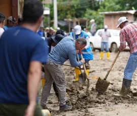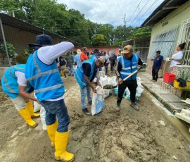 En un esfuerzo titánico, personal del Gobierno Provincial del Guayas, bajo el liderazgo de la prefecta Marcela Aguiñaga y el viceprefecto Carlos Serrano, llegó hasta Balao para brindar atención integral a la cabecera cantonal que resultó severamente afectada por el desbordamiento del río, que inundó amplios sectores y dejó calles llenas de lodo y sedimento.