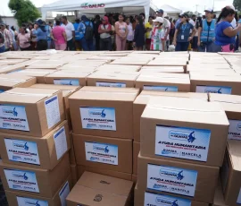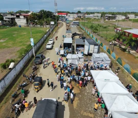 «Hoy lo que hace la Prefectura, sin duda, más que llevar una ayuda, algo físico, es dar esperanza a la gente que lo ha pasado mal. Estamos desde el día uno en Balao, no solo con ayuda humanitaria, sino con maquinaria en la reconformación de muro que estamos haciendo en algunos lugares que fueron afectados», informó el viceprefecto durante la entrega de kits de ayuda humanitaria, kits de limpieza, colchones y donaciones de ropa y alimentos para 600 familias de sectores como Santa Teresita, San José, San Jacinto, Barrio Nuevo o Las Madres.
