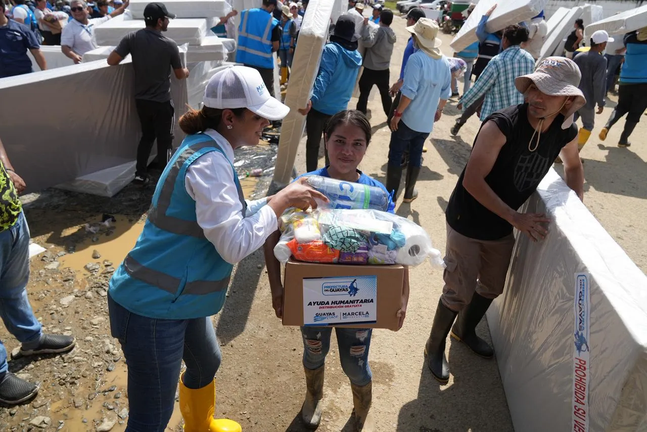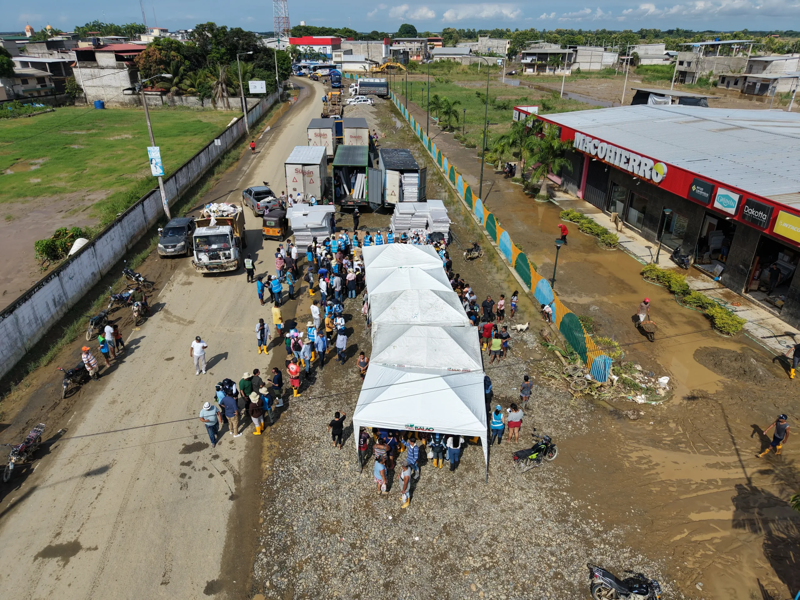 En un esfuerzo titánico, personal del Gobierno Provincial del Guayas, bajo el liderazgo de la prefecta Marcela Aguiñaga y el viceprefecto Carlos Serrano, llegó hasta Balao para brindar atención integral a la cabecera cantonal que resultó severamente afectada por el desbordamiento del río, que inundó amplios sectores y dejó calles llenas de lodo y sedimento.