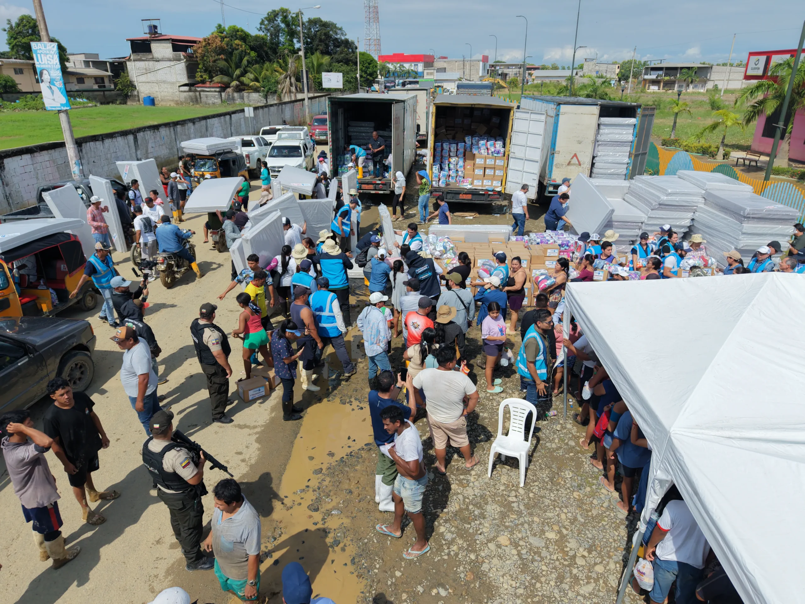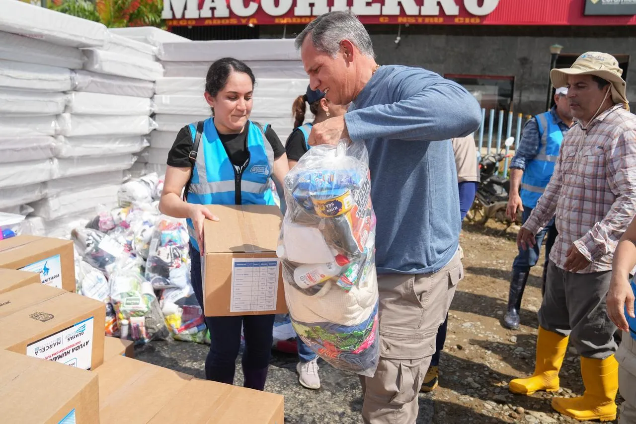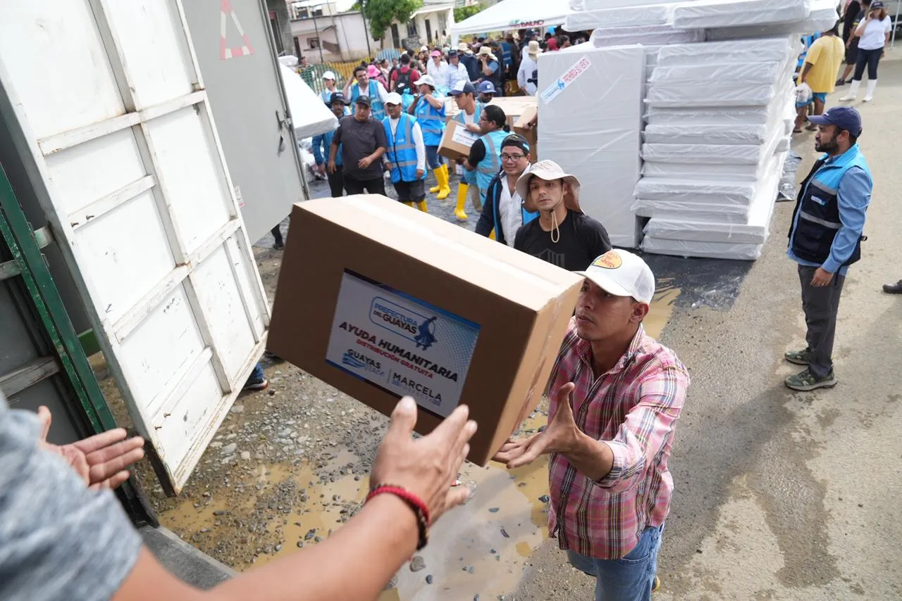 «Hoy lo que hace la Prefectura, sin duda, más que llevar una ayuda, algo físico, es dar esperanza a la gente que lo ha pasado mal. Estamos desde el día uno en Balao, no solo con ayuda humanitaria, sino con maquinaria en la reconformación de muro que estamos haciendo en algunos lugares que fueron afectados», informó el viceprefecto durante la entrega de kits de ayuda humanitaria, kits de limpieza, colchones y donaciones de ropa y alimentos para 600 familias de sectores como Santa Teresita, San José, San Jacinto, Barrio Nuevo o Las Madres.