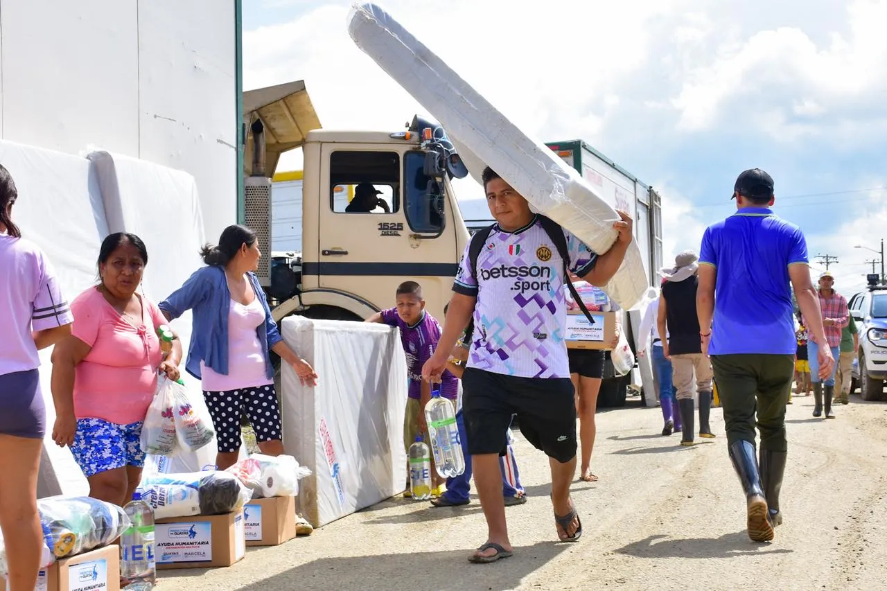La ciudad fue severamente afectada por el desbordamiento del río y arrastre de material. En la entrega de asistencia técnica y humanitaria, participaron colaboradores del Gobierno Provincial