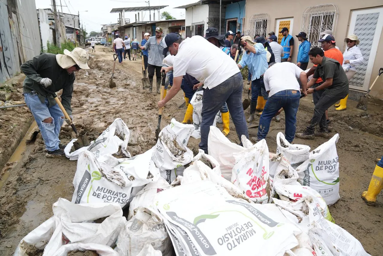Con el uso de maquinaria, técnicos de la Prefectura del Guayas, removieron el sedimento que había quedado acumulado en vías de acceso a la cabecera cantonal y en los barrios Primero de Mayo y Santa Clara. En este último sector, moradores reconocieron el gran esfuerzo del personal de distintas direcciones que participaron en la jornada, sacando el lodo con palas. «Gracias por haber venido a limpiarnos. Sí perdimos la esperanza de ver que no venía nadie. Ya vemos a la Prefectura aquí, laborando en nuestra calle Tiwintza», remarcó Lourdes Asencio, habitante del barrio Santa Clara.