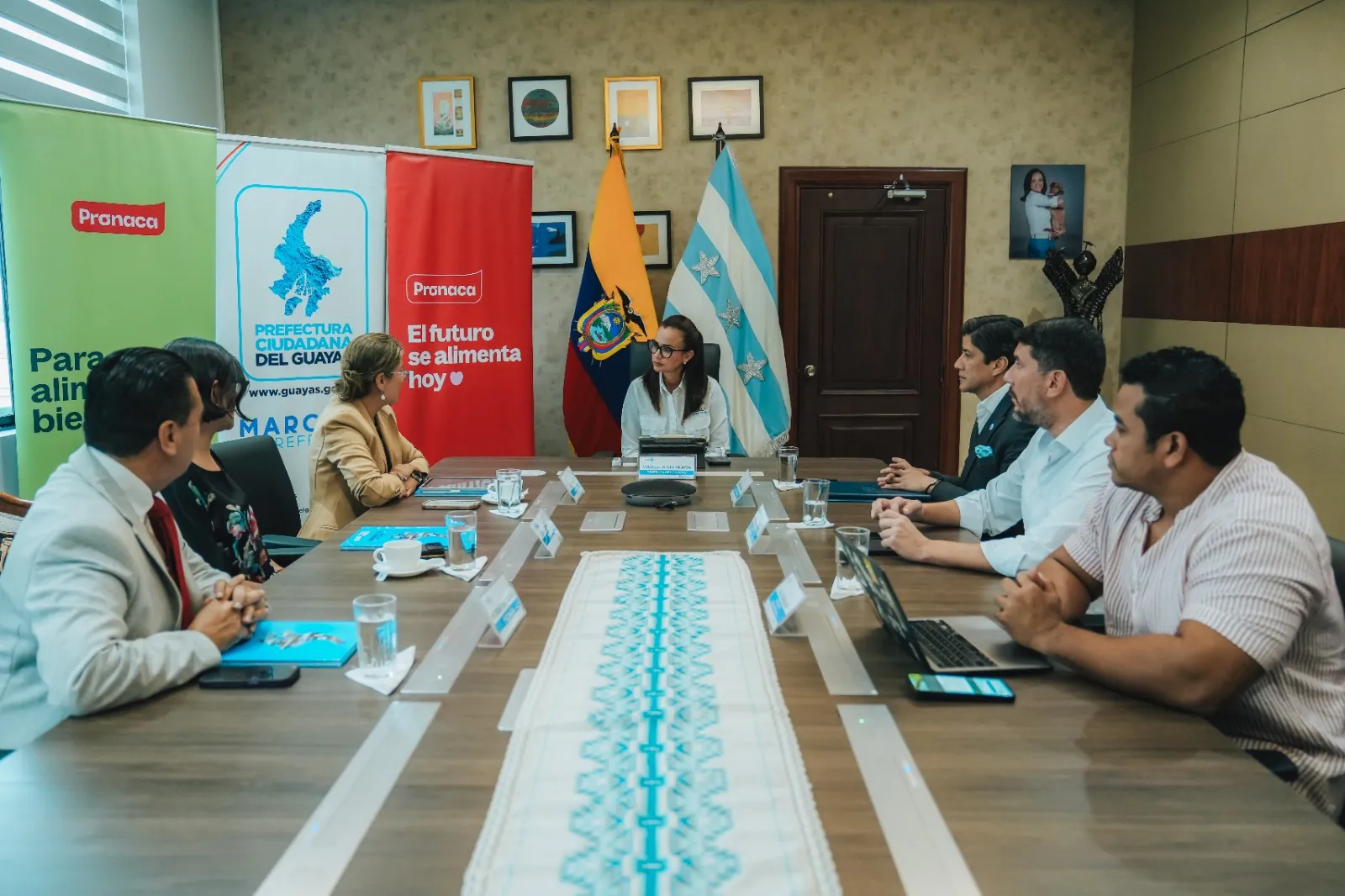 La Prefecta Marcela Aguiñaga consolidó una alianza público–privada con la empresa Pronaca mediante la firma de un Convenio Marco de Cooperación Interinstitucional, con el objetivo de desarrollar proyectos que mejoren la calidad de vida de la población, potencien la producción agrícola y promuevan la sostenibilidad ambiental en la provincia. El convenio establece una ruta de trabajo conjunta en tres ejes prioritarios:
